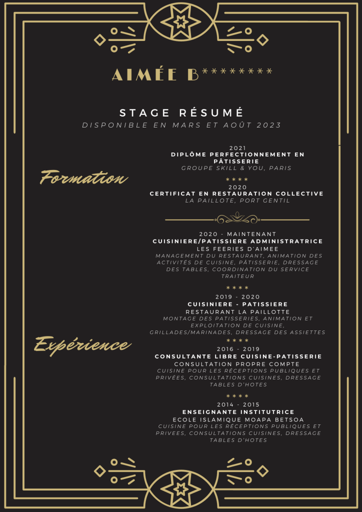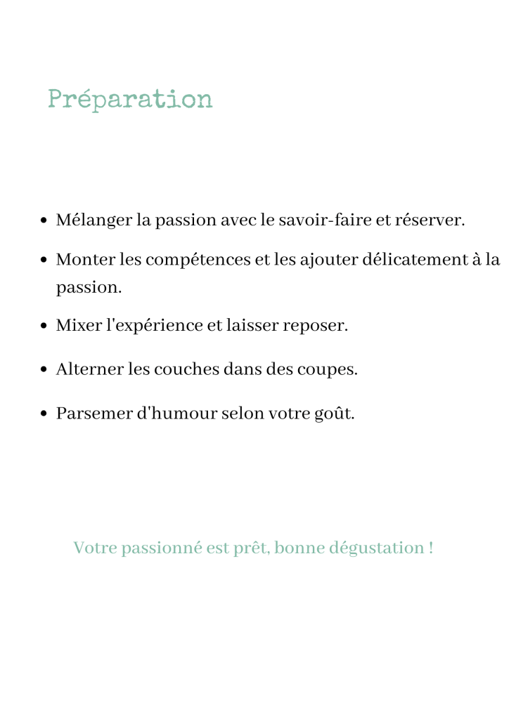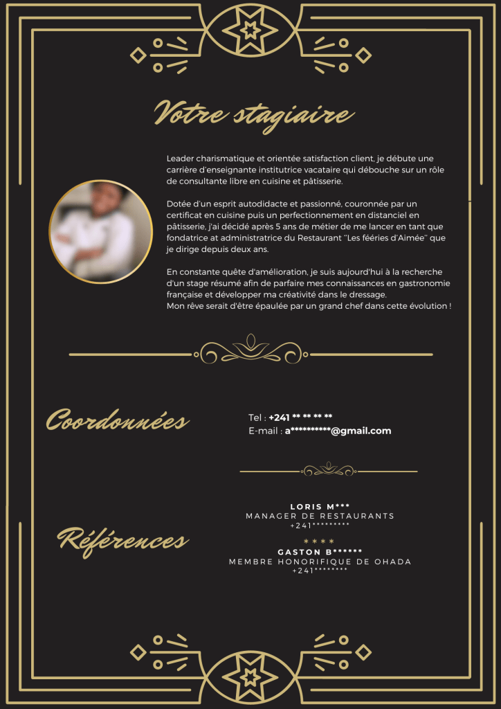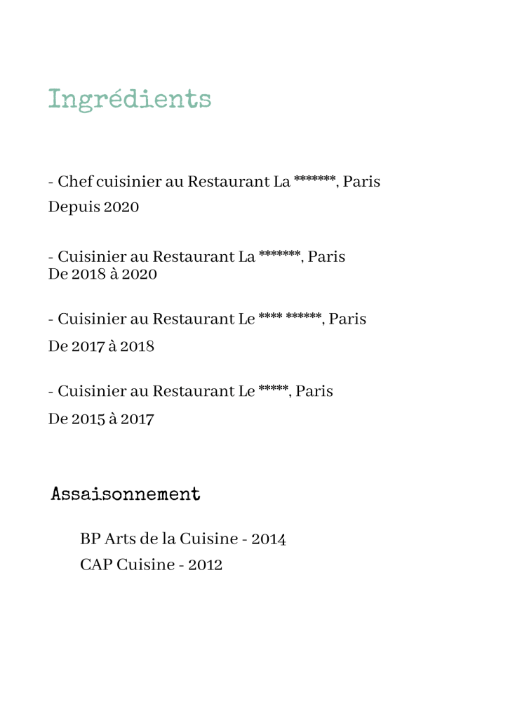 « Très malin et original le format menu, je n’y aurais jamais pensé et pourtant ça me semble maintenant être une évidence ! Je ne peux plus imaginer mon CV autrement, quand je regarde l’ancien j’en ai presque honte tellement celui-ci me correspond ! Je me sens mise en valeur autant que mon parcours. Bravo Job & Coach, vous avez réussi à mieux me représenter que je ne l’avais fait moi-même. »